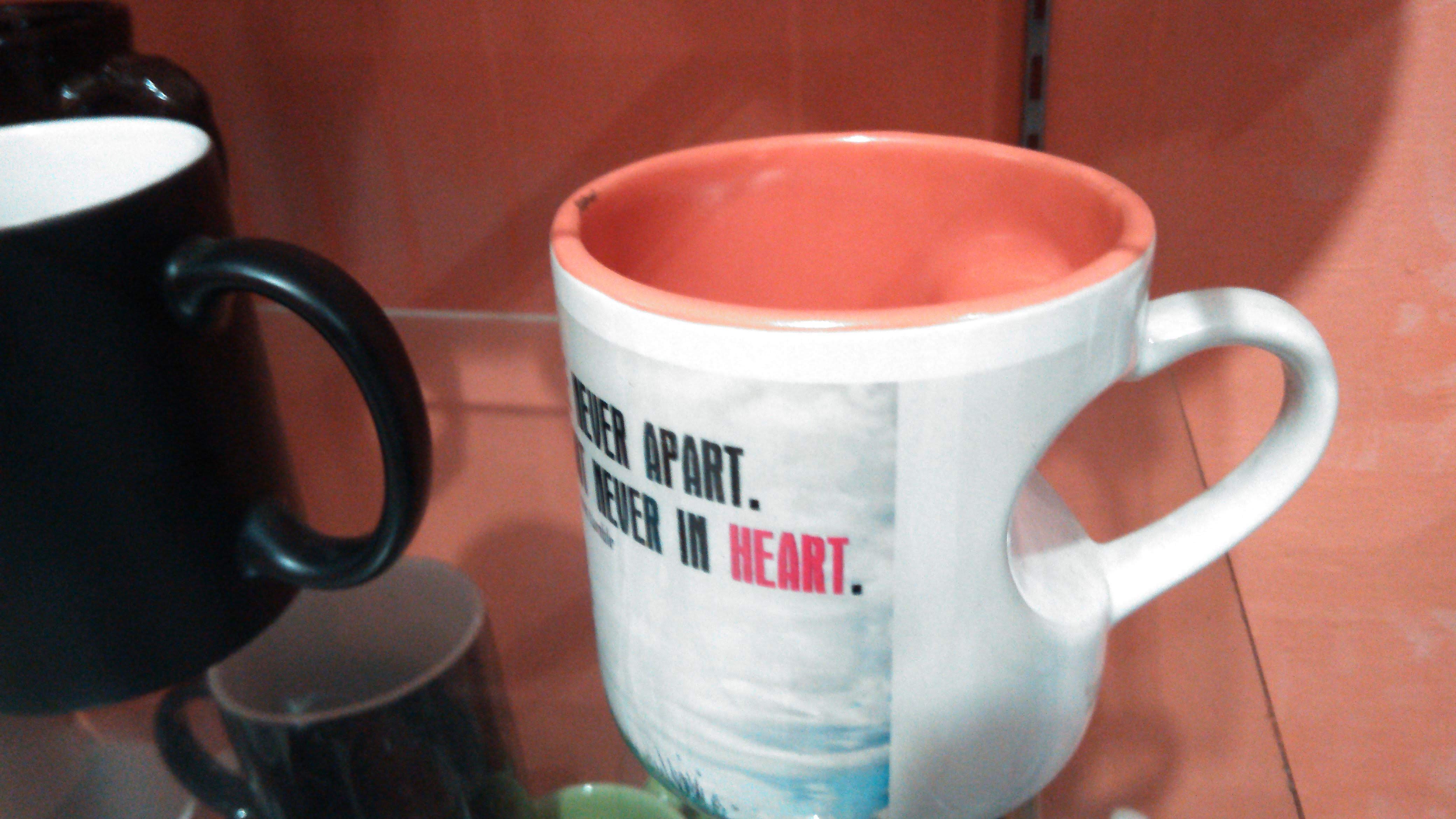 Mug love memiliki warna putih bagian luar, sedangkan bagian dalamnya terdapat berbagai warna (two tone)